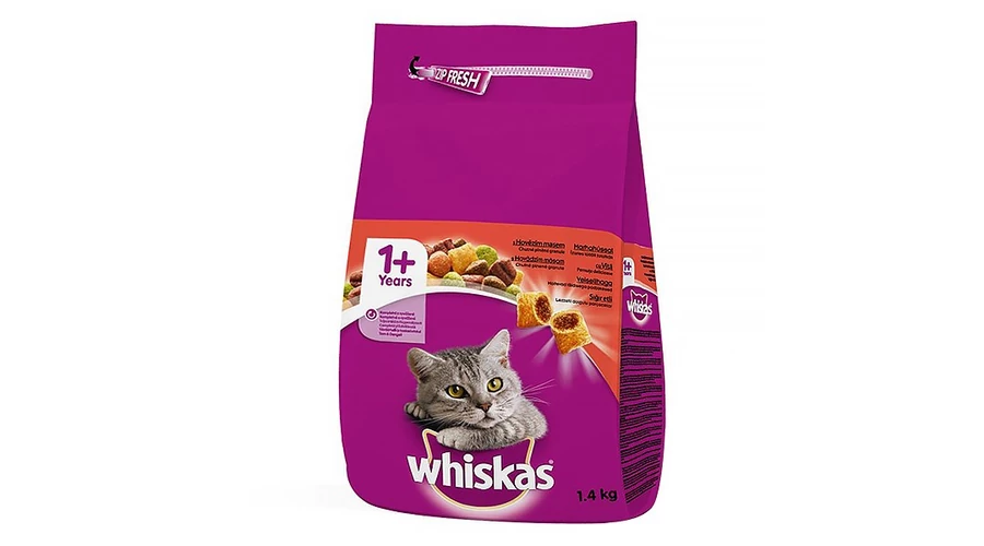 A WHISKAS® érti, hogy cicája mit szeret és természeténél fogva mire van szüksége. Ezért a WHISKAS® 1+ teljes értékű és kiegyensúlyozott eledel a vitaminok és ásványi anyagok optimális egyensúlyával segít, hogy Ön a lehető legjobb törődést biztosíthassa macskája számára. A WHISKAS® szárazeledelek ízletes töltött falatkákat tartalmaznak, melyek kívül ropogósak, belül pedig ínycsiklandóan krémesek.