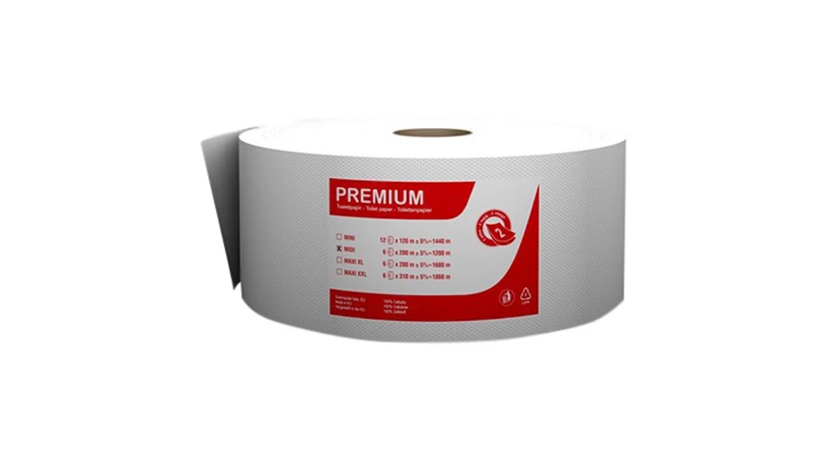 A Premium MIDI fehér közületi toalettpapír, 100% cellulóz,