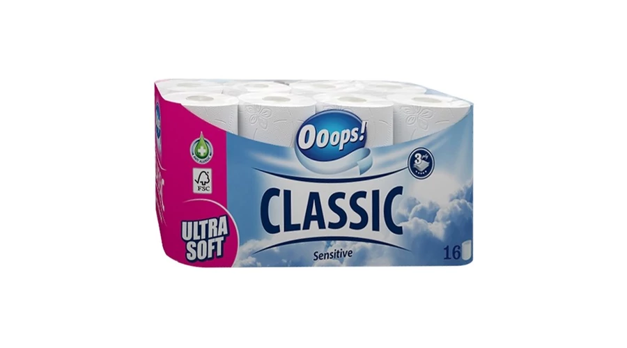 Toalettpapír OOOPS! Classic Sensitive 3 rétegű 16 tekercs