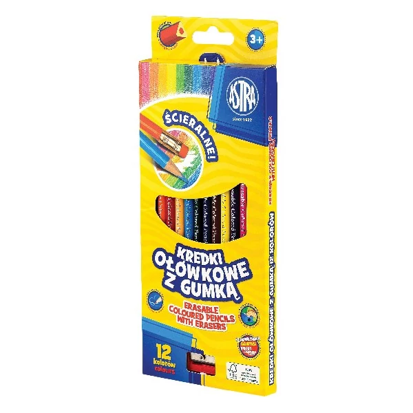 Színes ceruza készlet radírral 12 ajándék hegyezővel