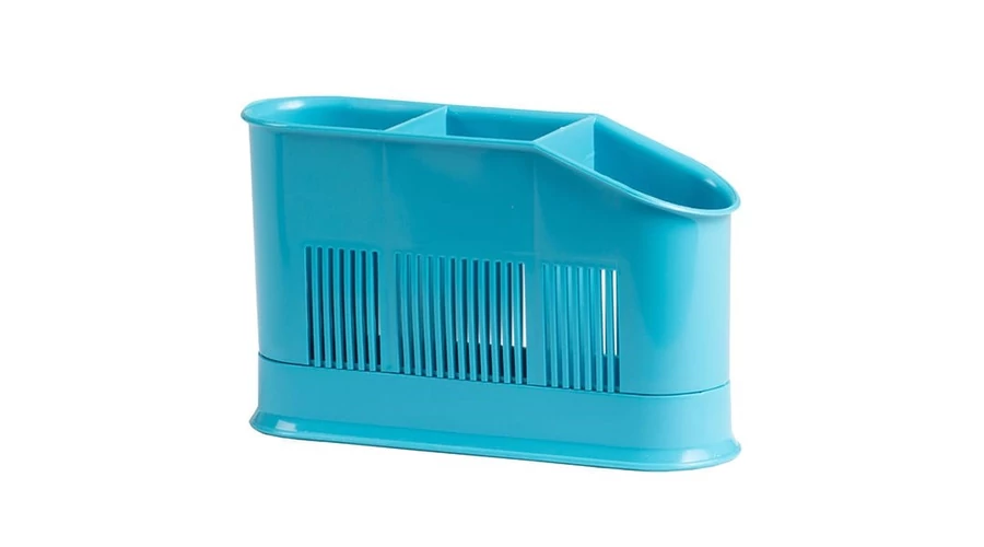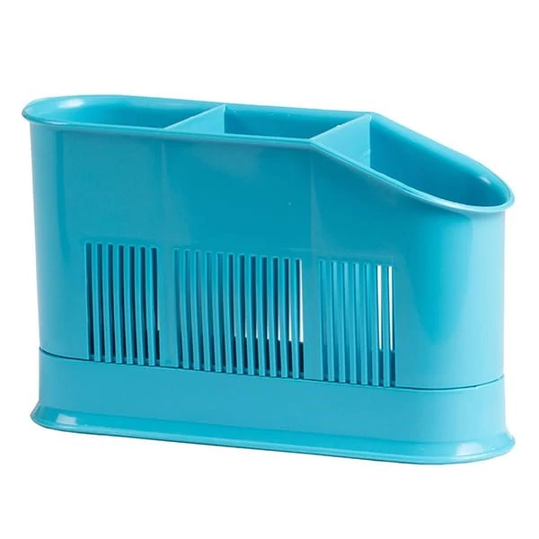 3 rekeszes, műanyag evőeszköztartó, lefolyó talppal. A három rekesz lehetővé teszi a különböző méretű evőeszközök szárítását.