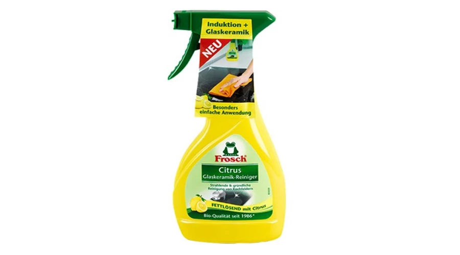 A Frosch főzőlap tisztító spray hatékonyan tisztítja az indukciós vagy üvegkerámia főzőlapokat. Citromkivonatot tartalmazó formulája a hatékony tisztítás mellett kellemes illatot biztosít.