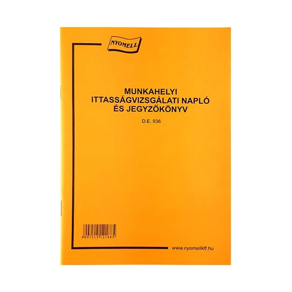Munkahelyi ittassági vizsgálati napló és jegyzőkönyv.