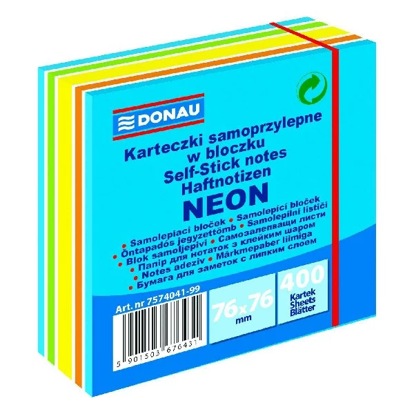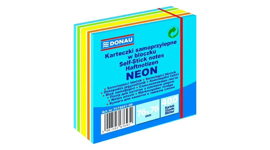 Az univerzális, neon és fehér színű jegyzetlapok ideálisak jegyzetekhez és üzenetekhez. A ragasztó vízzel eltávolítható. A termék megfelel a hulladék újrahasznosítására és felhasználására vonatkozó "zöld pont" jelölésnek az EU szabályozás előírásai alapján. Fóliába csomagolva, piros szalaggal a könnyebb nyitás érdekében.