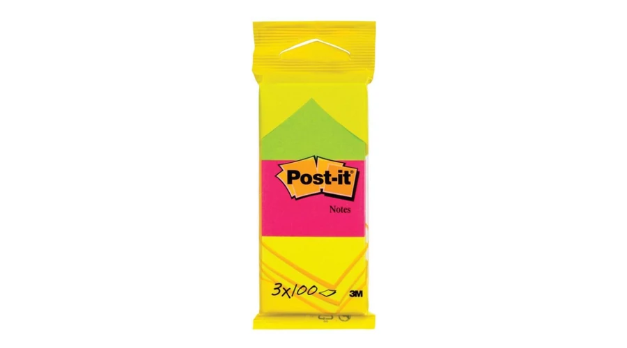 Post-it® Neon jegyzettömb csomag 3 tömb, vegyes neon színek bliszteres csomagolásban.