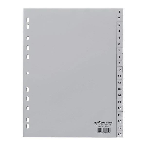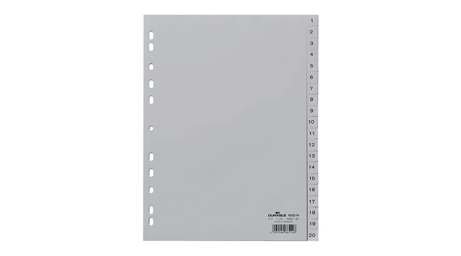 Regiszter DURABLE műanyag nyomtatott A/4 1-20 részes szürke